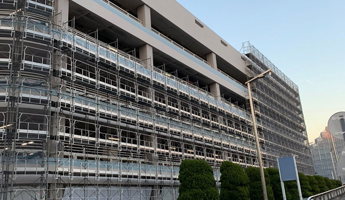 弊社ではマンション、ビル、商業施設などの比較的大規模な工事を中心に改修足場の施工を行っております。既に出来上がっている構造物に足場を組んでいく作業のため、建物を傷つけないよう、改修足場用のメッシュシートを使用して細心の注意を払いながら、作業を行います。また、建築現場はさまざまな業者様や、関係者の方が利用する場でもあり、安全で快適な作業現場をいかに構築するかということがとても重要になってきます。安全第一の基本理念を基に、現場での作業が少しでも円滑に行えるよう、施工現場に応じた最適な足場をご提供いたします。