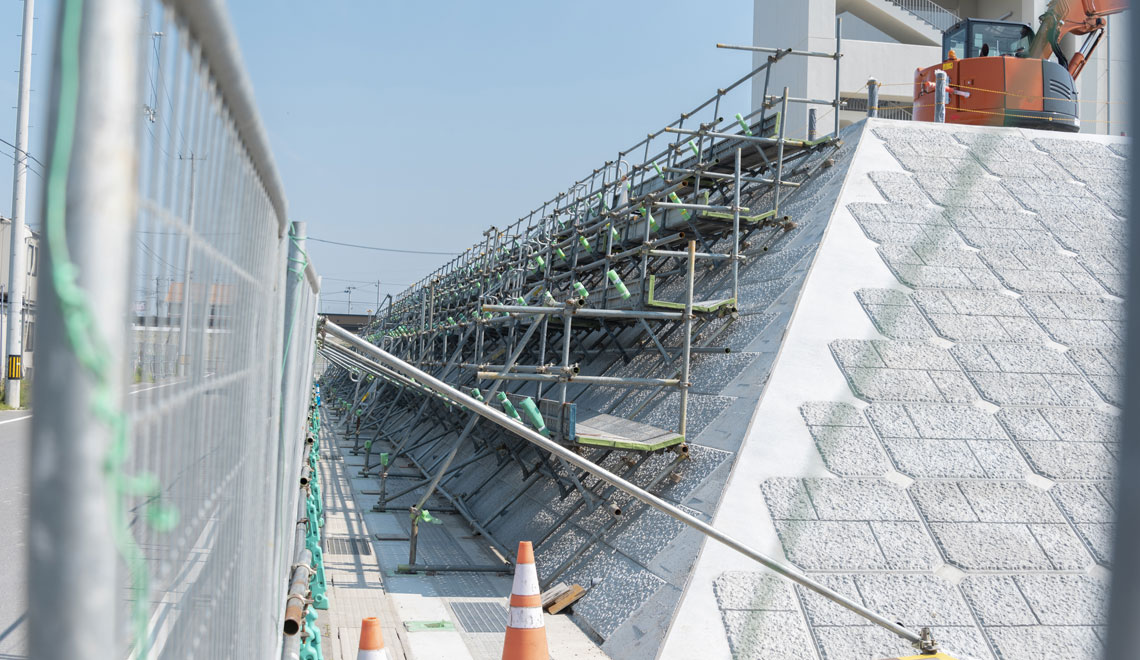 斜面や崖地、切土法面などにおける作業のために設置する専門の足場施工です。法面工事や保護処理工事においては、地盤の傾斜や法長、施工内容に合わせた柔軟な足場設計が不可欠です。弊社では、安定性を確保するための緻密な構台設計や、アンカー打設などの補強工事と連携した足場架設を得意としています。経験豊富な職人による確かな施工技術と厳格な安全管理体制により、高所・不整地といった厳しい施工環境でも、安心してご依頼いただけます。